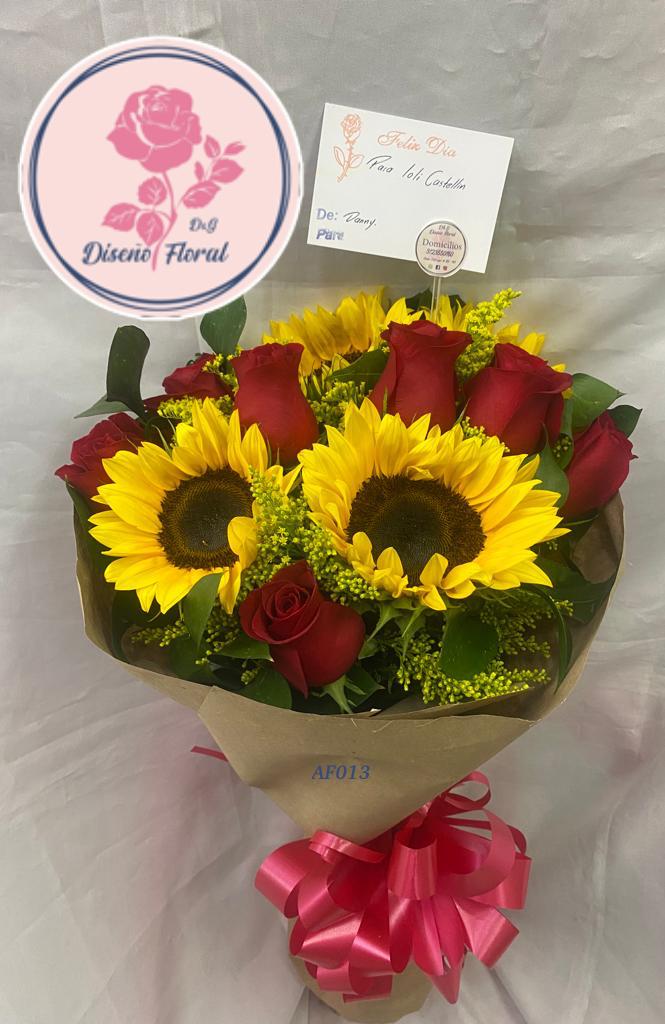 Este bouquet es la elección perfecta para transmitir sentimientos cálidos y positivos. Ya sea para celebrar un día especial, expresar gratitud o enviar un mensaje de ánimo, la combinación de girasoles brillantes y rosas delicadas crea un arreglo armonioso que iluminará cualquier ocasión.